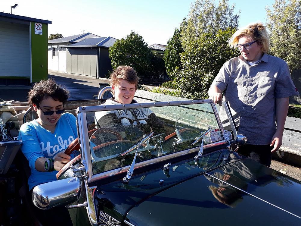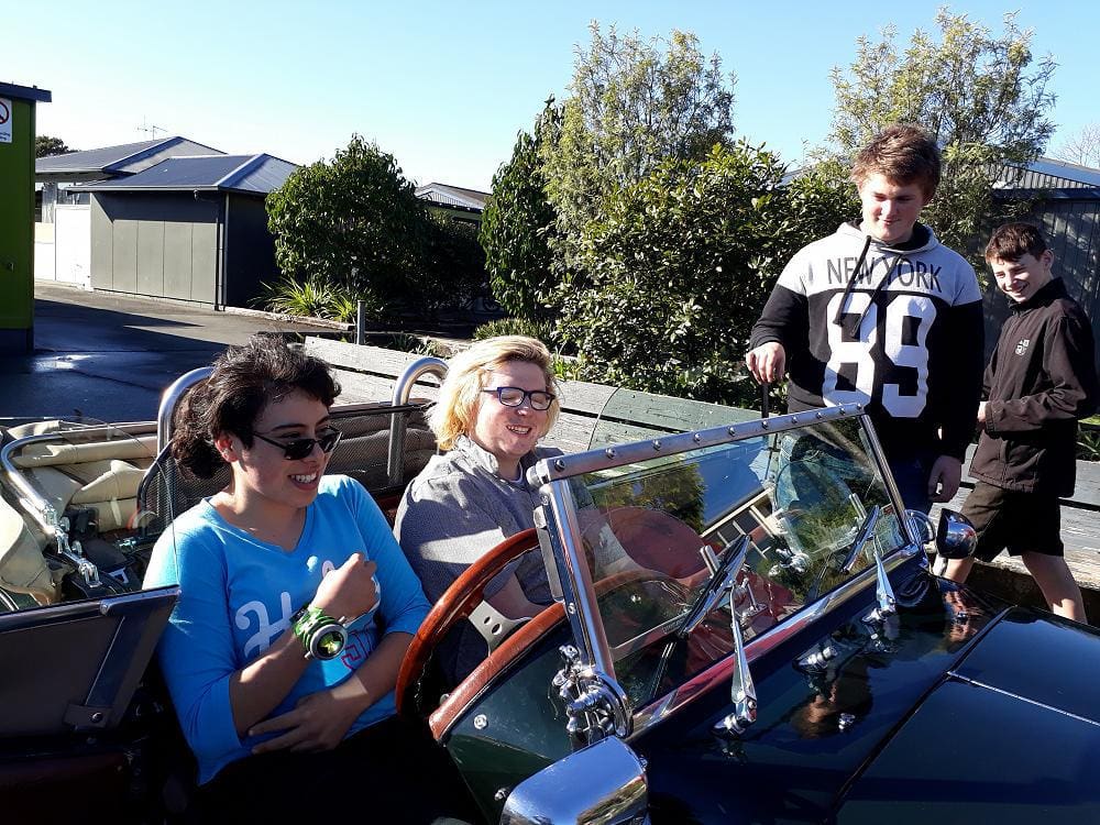 Everyone had a turn sitting in the car and there was a request to drive it around the field, fast! Students also questioned Mr Glue about running costs as they are currently researching costs associated with cars including insurance, petrol usage and warrant of fitness.