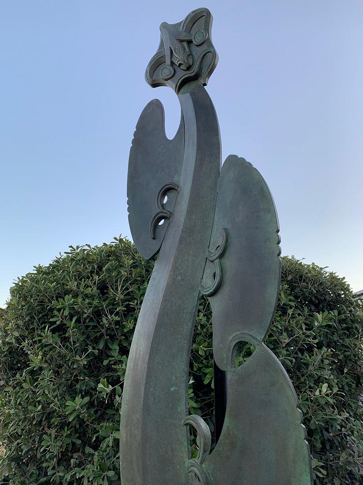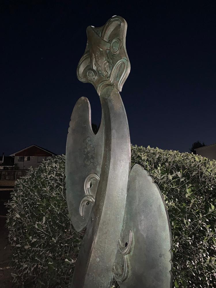 Designed and created by renowned artist Rangi Kipa, a descendant of the original tūpuna of Wakatū, the pou represents a modern interpretation of the classical kaitiaki (guardian) forms, known as manaia.