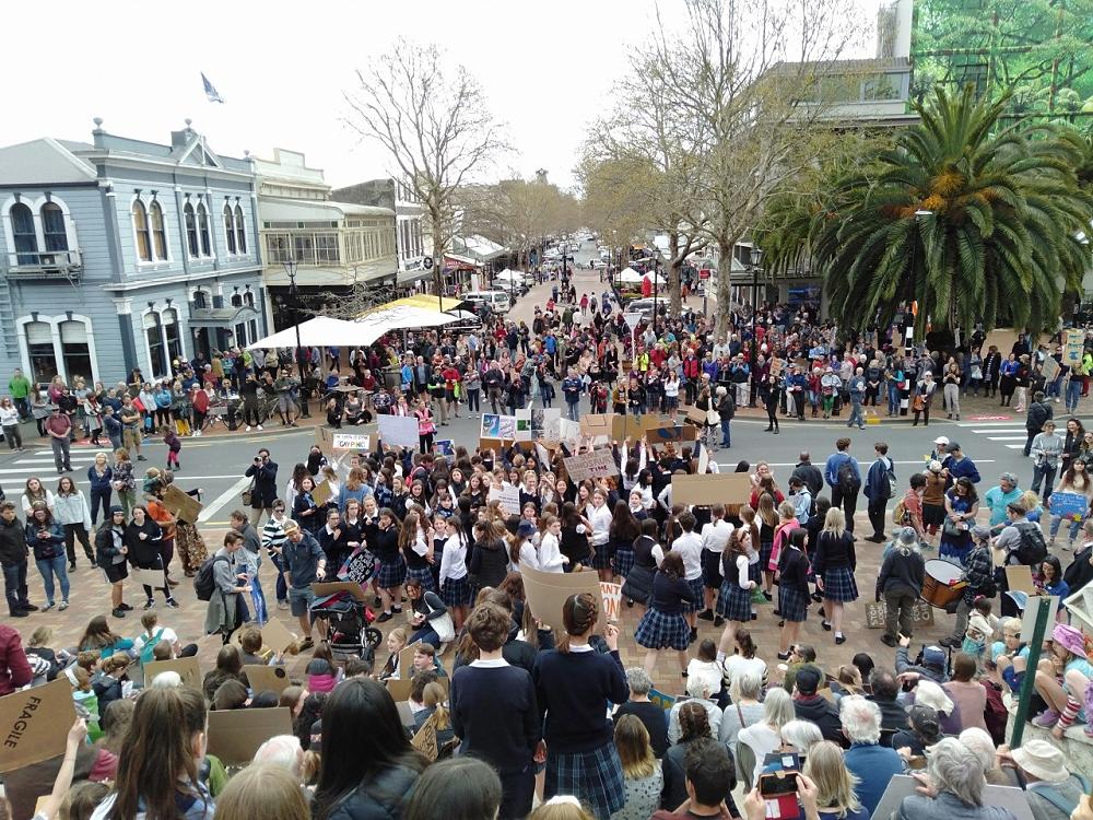 Hundreds of Nelson students were joined by adults striking for climate action in the first intergenerational protest of the Strike for Climate movement.