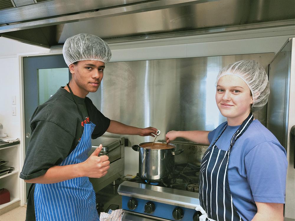 Once Andrew has made up a batch of Supa Sauce, the students are in charge of sterilising the bottles and bottling the product. Last week Ebony and Isaiah worked with the chef to bring the sauce up to the correct temperature prior to bottling in Nayland’s commercial kitchen. Their first batch was on display for tastings and sales at our Open Evening on Tuesday night and the public responded well with $500 to $600 worth of sales made in that one night alone.