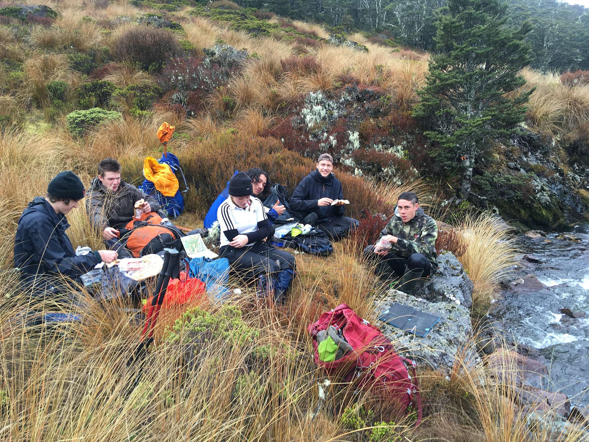 We spent an entire day pushing our way through thick, impenetrable bush, often even having to resort to a clumsy form of breaststroke in particularly thick areas and navigating over open tussocks that were often shrouded in low fog. We learnt how to use compasses to take bearings as well as combining the landscape and the map to find out where we were and how to get to our destination. It was an epic day and we ended it exhausted but in high spirits. It’s fair to say we all slept well that night, even if it was a wee bit damp. Throughout the day, we had all had a go at navigating and taking a leadership role on and off the beaten track.
