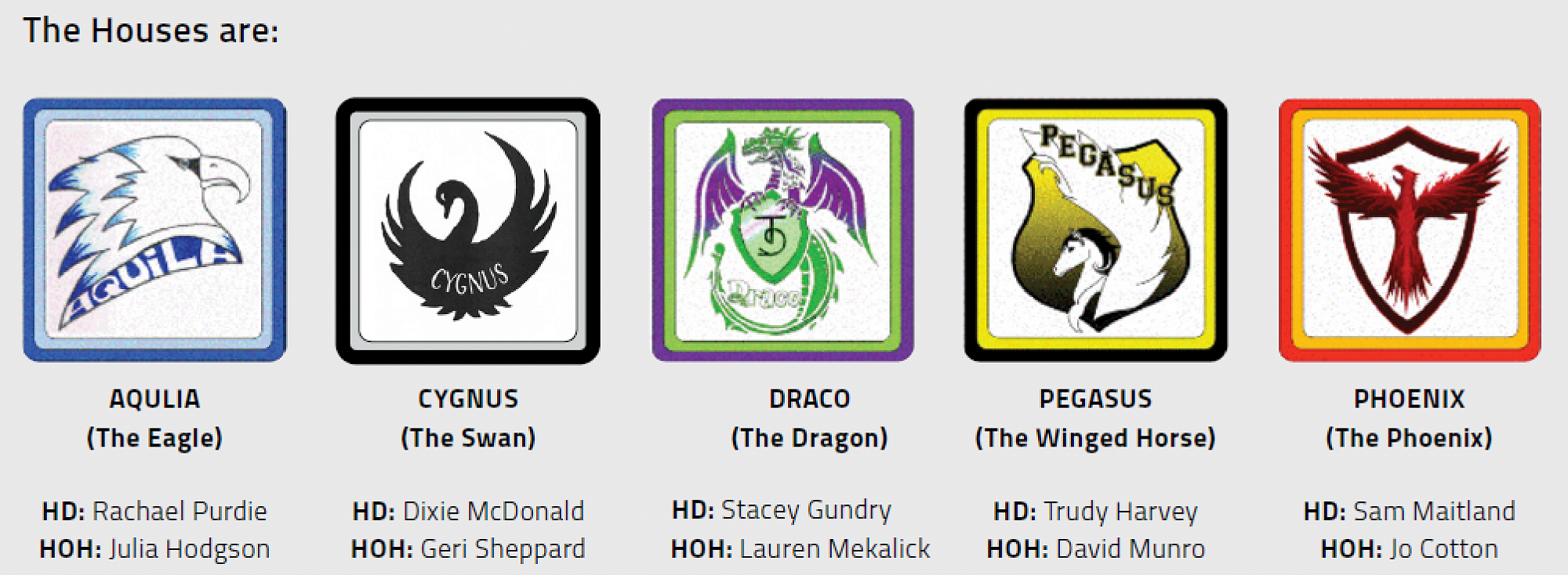 On enrolment, each student is assigned to one of the five Nayland College houses: Pegasus, Phoenix, Cygnus, Aquila or Draco. This house becomes their ‘school within a school’ over their time at Nayland College. As well as providing pastoral structure for the school, houses are an opportunity to participate in fun, team building, whanaungatanga and leadership events.