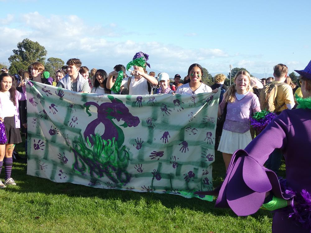 Heads of Houses, supporting staff and a team of dedicated students have worked hard over the past few weeks in preparation of today’s ‘Big Day Out,’ otherwise known as ‘House Day.’ Thankfully the rain held off and it was a beautiful day for students to be outside for the day, rotating through five different activities with their houses. The events included the ‘Mega Course,’ ‘Water Fiesta,’ Haka, Ngā Toi, and Field Art.