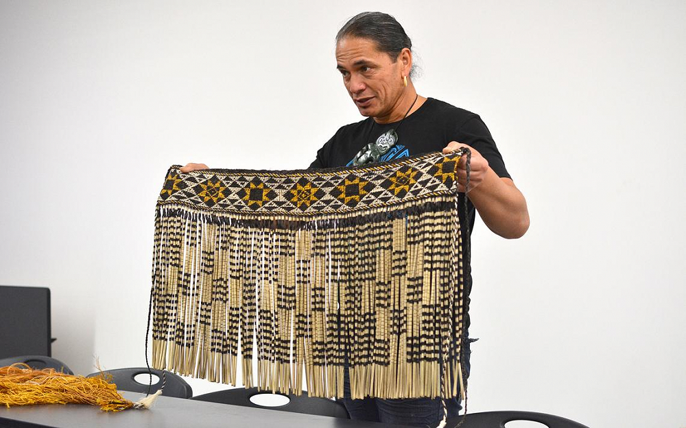 Last night Pūaha Te Tai Whānau hosted a pōwhiri and wānanga at Nayland College to welcome Master Weaver Karl Leonard, who has handcrafted a set of traditional piupiu for the Pūaha Te Tai Kapa Haka Rōpu to wear in upcoming competitions.