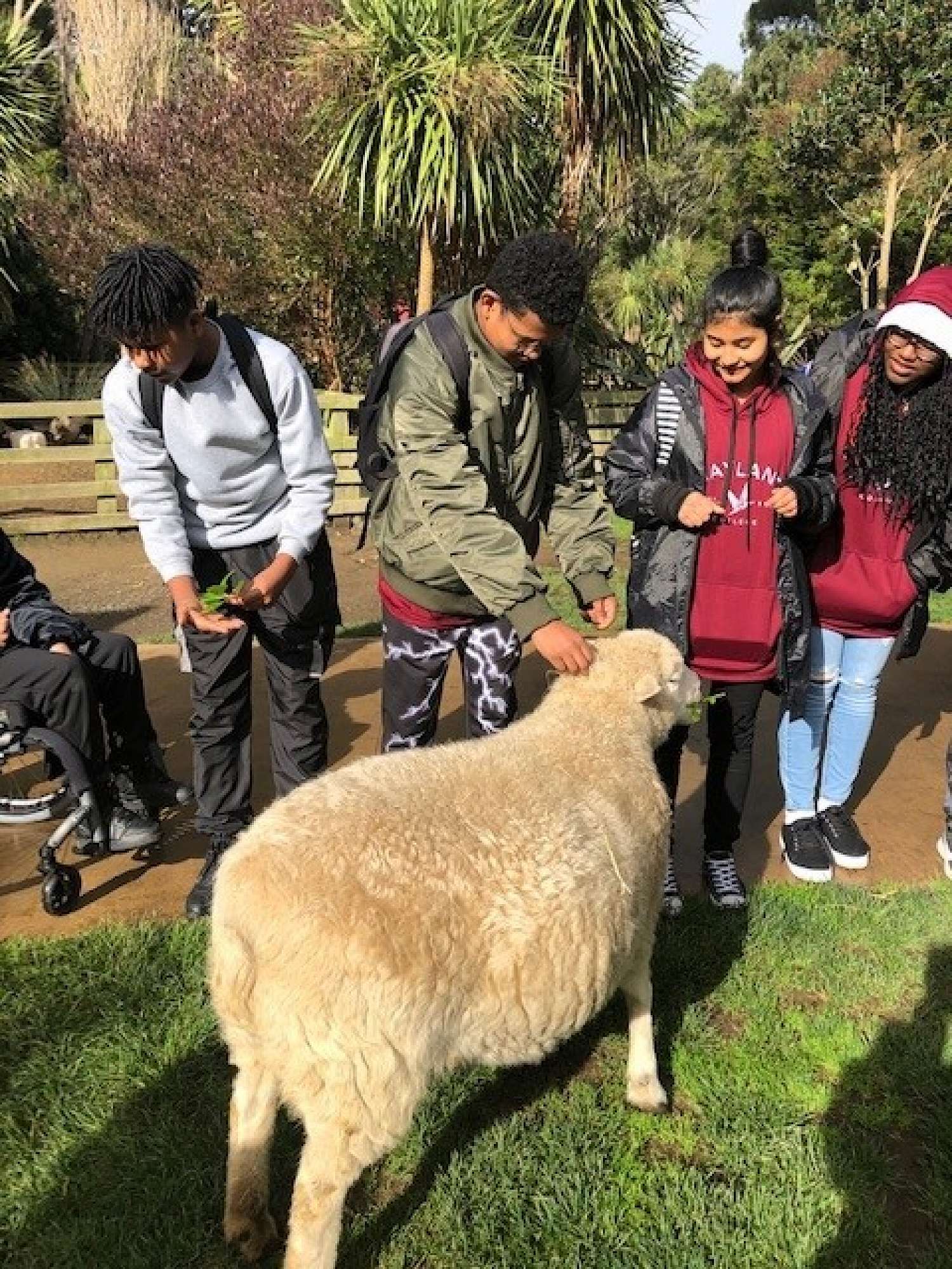 This morning the weather still hadn’t improved and actually the ferries were running 2 hours late due to the weather conditions. Again, this didn’t deter us and off we went to the zoo. A highlight of the Unique New Zealand tour was feeding a sheep. After this they got to walk around the zoo.