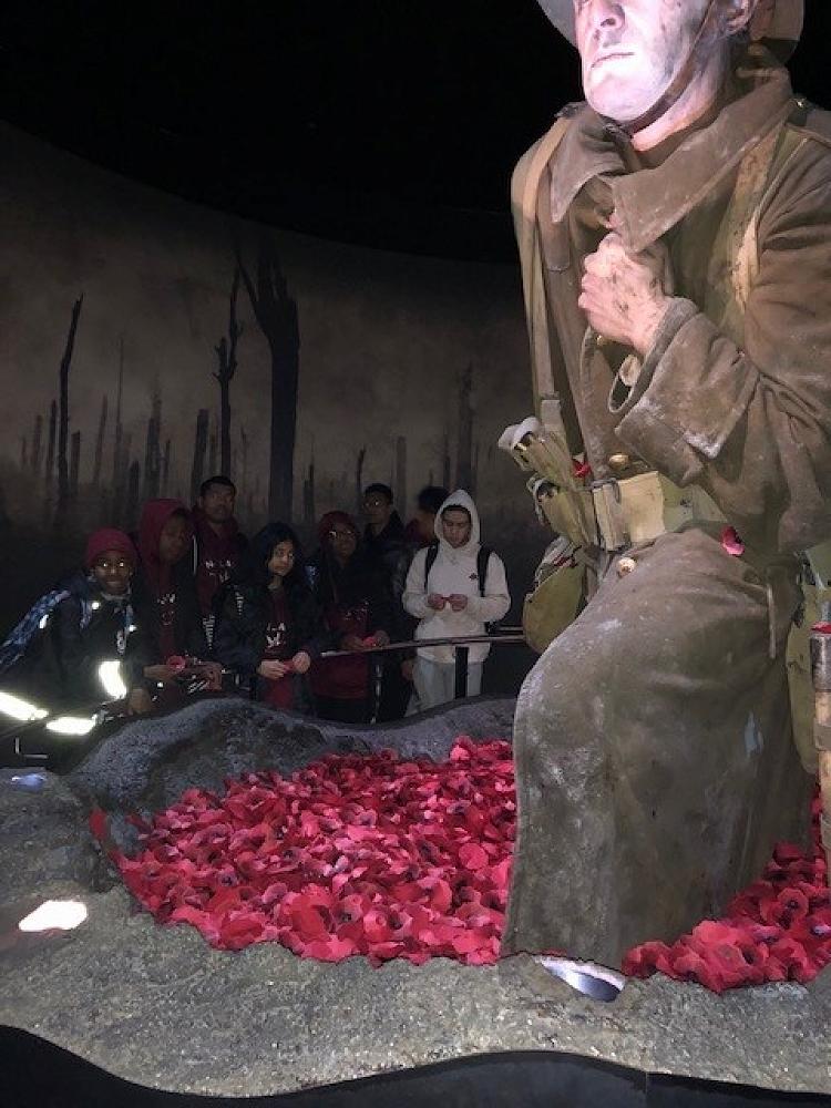 Here the students firstly went through the Gallipoli exhibition and at the end wrote their message on a poppy and threw them in amongst those of other visitors. The students were fascinated by the large soldiers inside and their story.