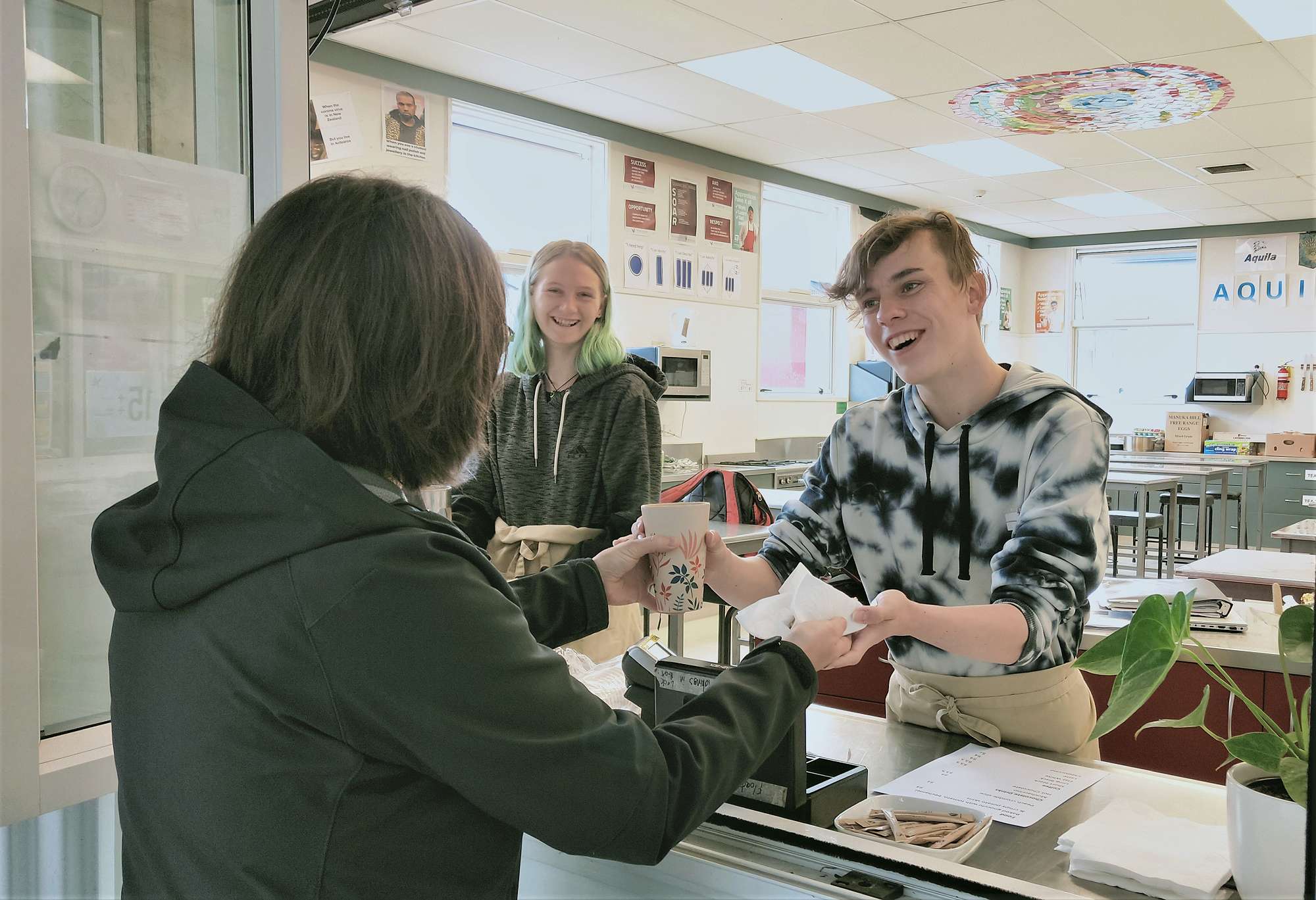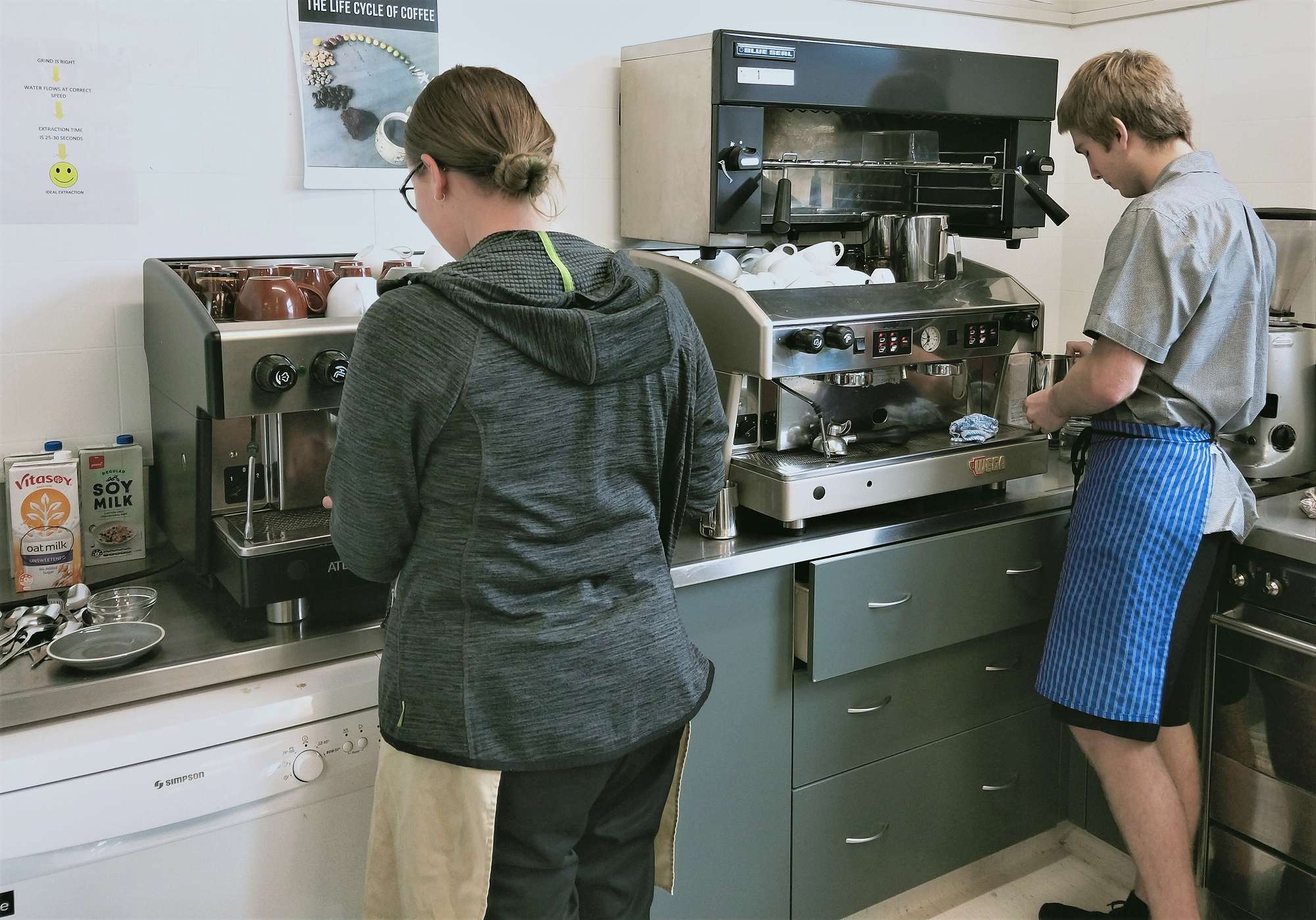 Max Floyd joined the Manaaki Pop-Up Cafe team when he was only in Year 10 after showing keen interest in learning to make coffees. “I saw these machines and asked [Mr Robinson] about it and he started getting me down here at morning tea with the Year 13’s.”