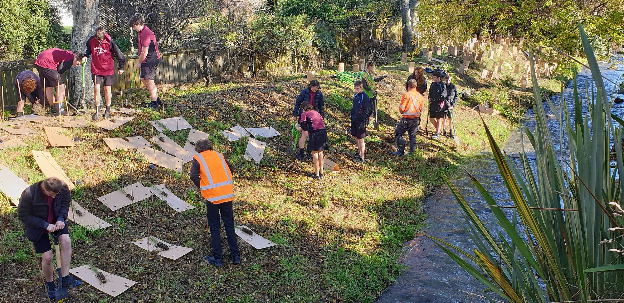 This week, a number of classes and additional volunteer students took time out of their day to help plant a range of native grasses, shrubs, and iconic species along Poorman Valley Stream as part of a collaborative work by Healthy Streams, Nelson City Council, Nelmac and Nayland College.