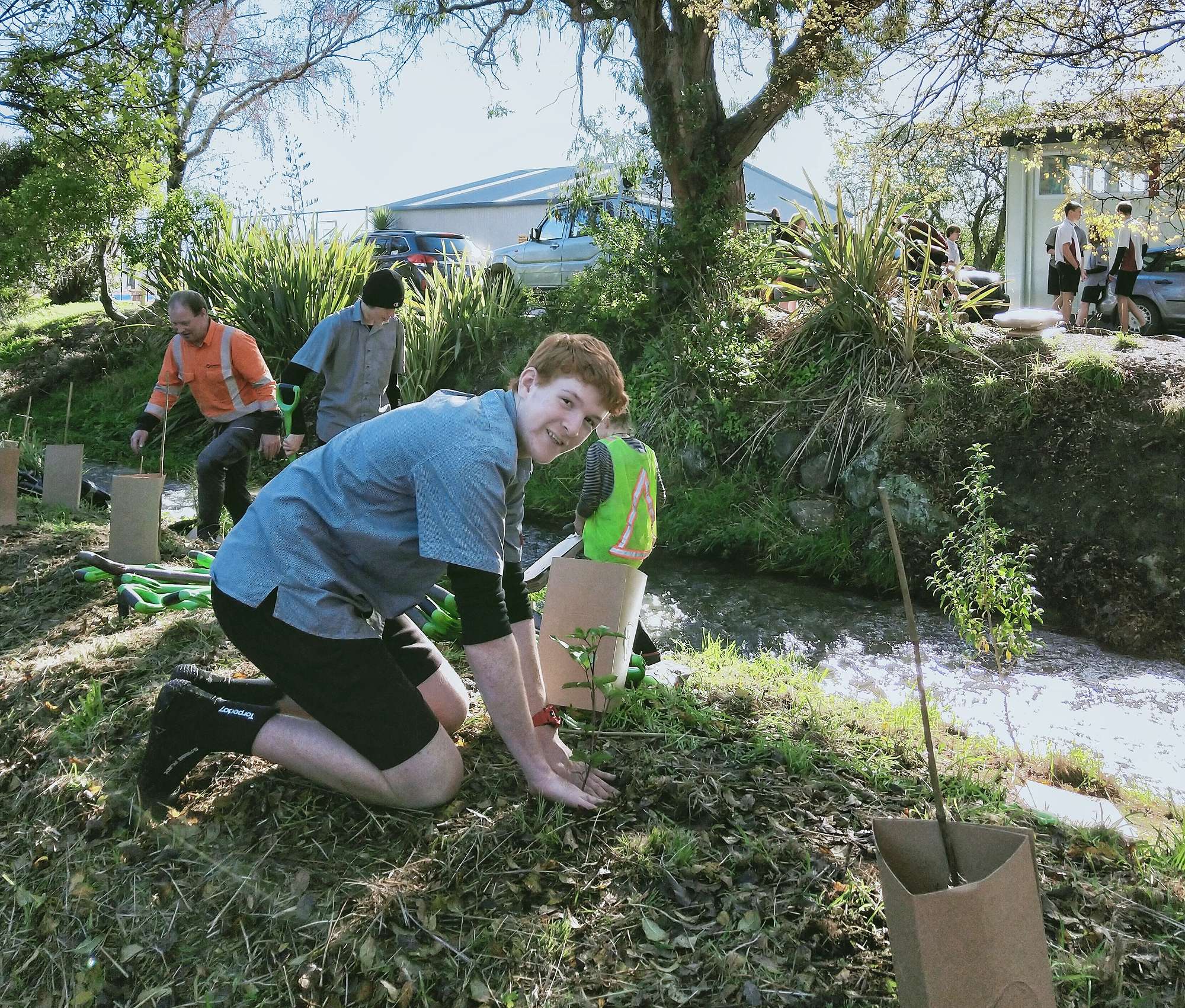 A huge collaborative effort saw rotating shifts of students taking part in streamside planting all day on Wednesday this week.