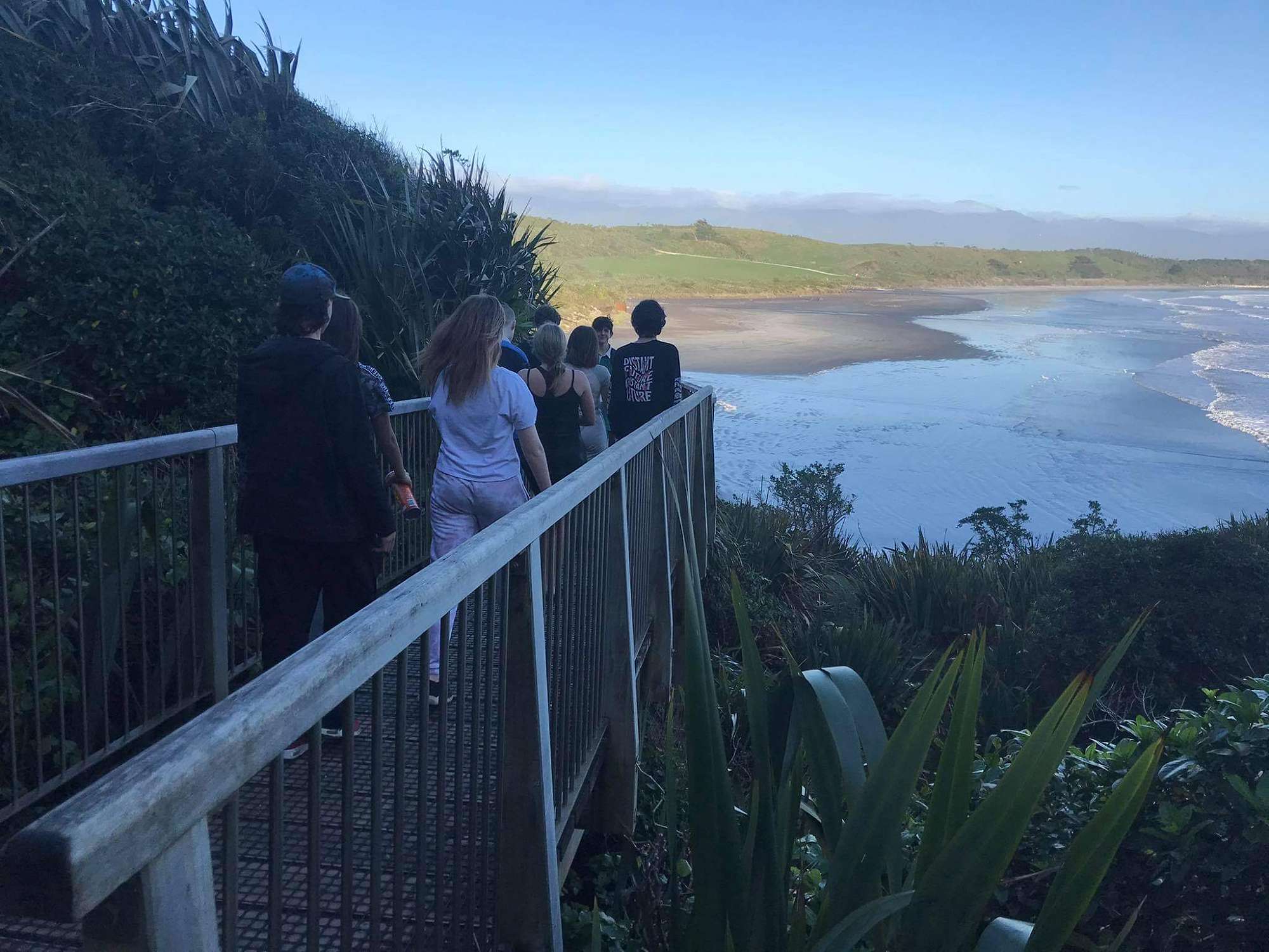 A walk around the point gave the students an opportunity to get up close to the swell as it peeled around the headland, causing a mixture of excitement and nervousness about our surf lesson the following day. The rest of the day we spent exploring the coast: first, checking out the seal colony and lighthouse at Cape Foulwind, and then watching the sun go down over the Tasman Sea at Carters Beach.