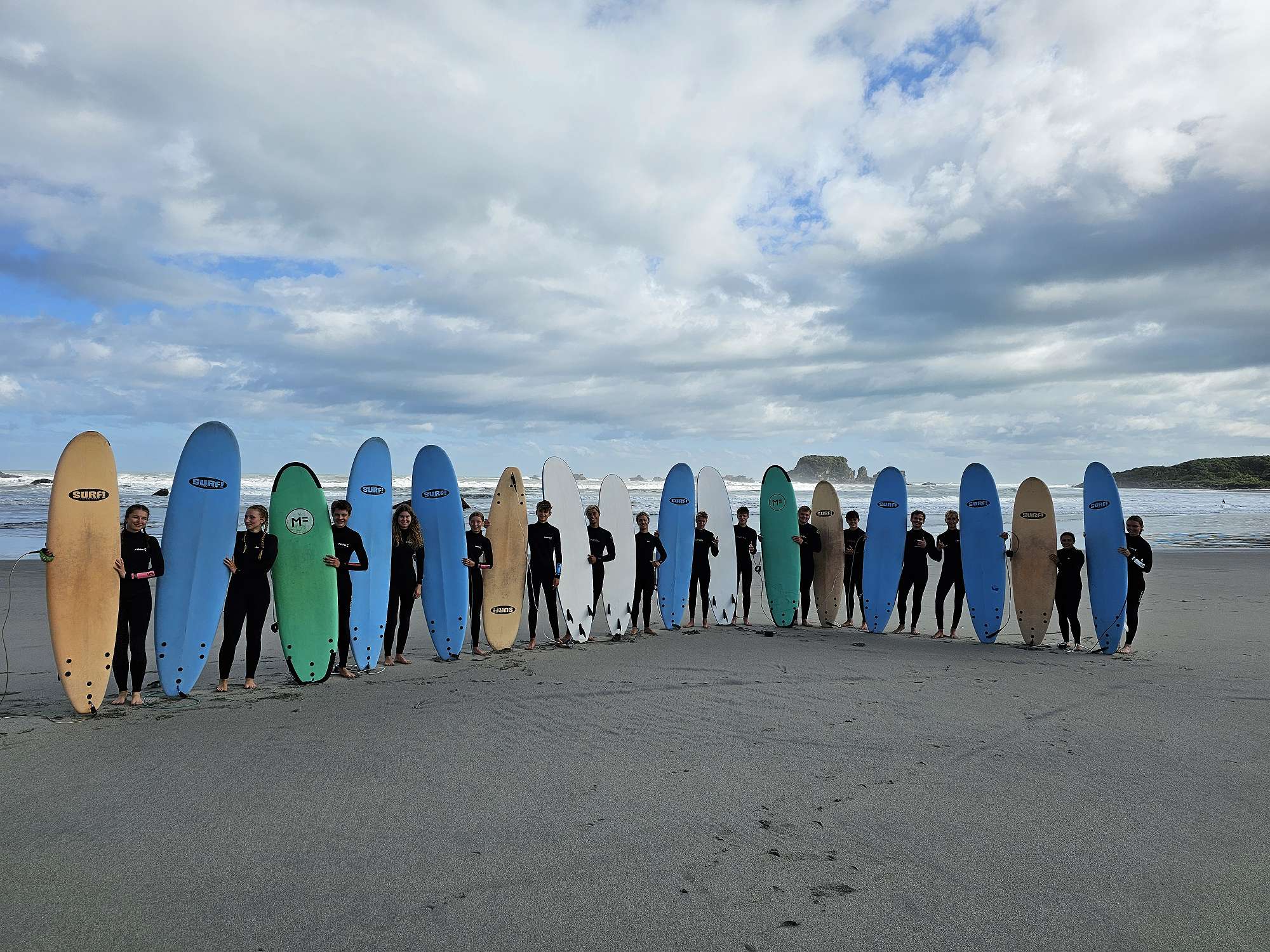 Last weekend 16 of our international students travelled to Tauranga Bay, Westport for an action-packed surfing trip. Our students had an epic day with plenty of wipe-outs, but everyone progressed to standing thanks to the expertise of West Coast Surf.