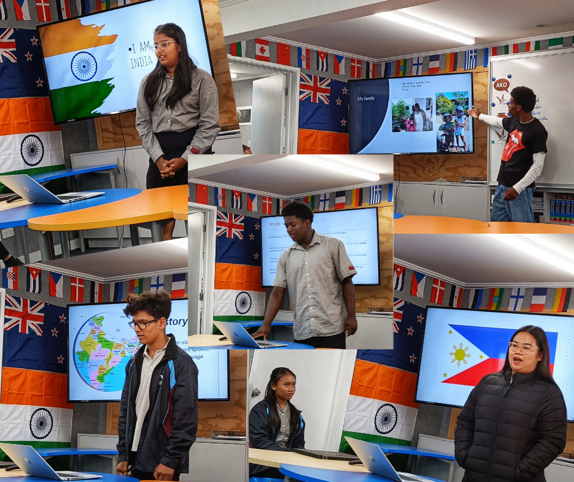 Across the course of this term, each ESOL student has shared a presentation about their family and their home country. Students put together powerpoint shows that included their flags, traditional dances and food, photos of their family and more. Some students also shared why they came to New Zealand, which in the case of a few of our former refugee students, were harrowing stories to hear. Teachers were invited to come along to the lunchtime presentations and it was a privilege to hear the stories and get to know some of our ESOL students a little better.