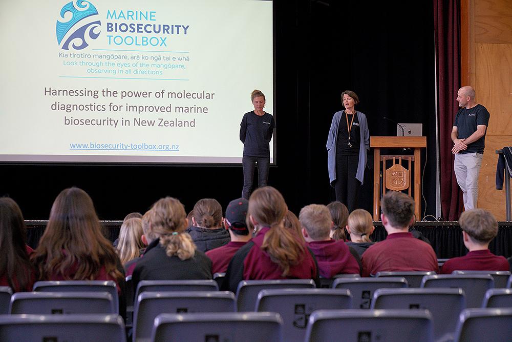 They ran two hands-on workshops, where our students got a chance to use their identification skills to find invasive marine pest species from our local marina, and they also got to explore how future biotechnology tools can be used to identify the presence of marine pests, based on the environmental DNA (eDNA) that all living organisms leave behind as they move through their habitat.