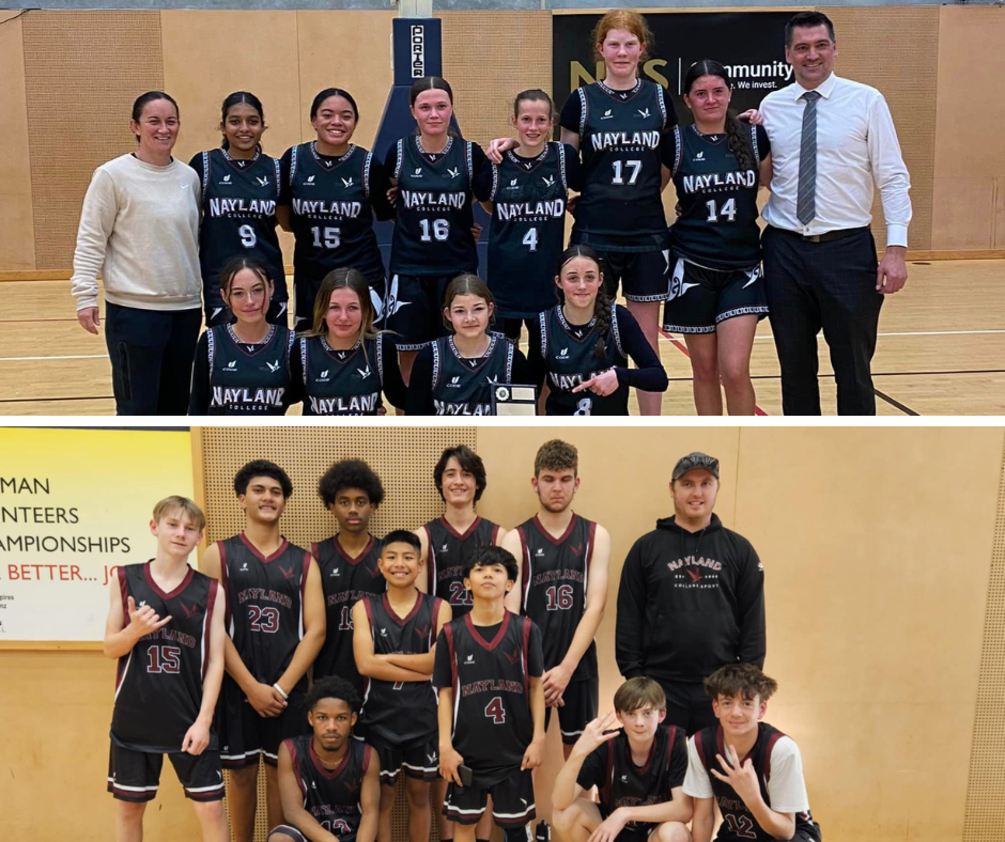 Wednesday night was College finals night for basketball. Nayland College picked up two titles winning the Premier Junior Girls competition and the Division 2 Junior Boys Championship. Massive season by all and thank you wholeheartedly to coaches Sam Berkett Jeremy Banks and Jodi Hikuroa-Jeffrey.